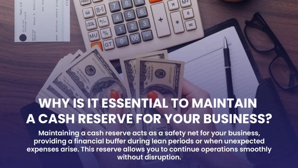 Maintaining a cash reserve acts as a safety net for your business, providing a financial buffer during lean periods or when unexpected expenses arise. This reserve allows you to continue operations smoothly without disruption.