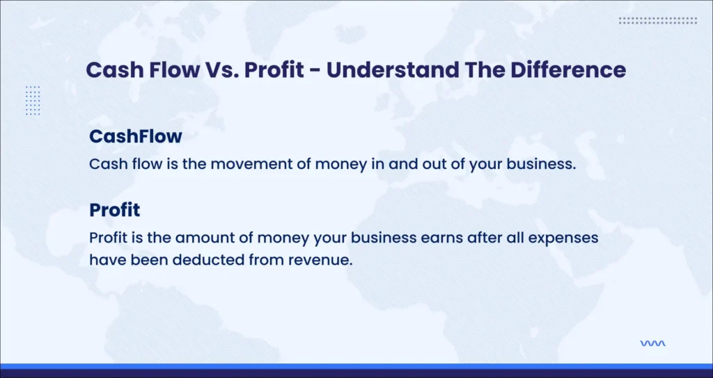 • Cash flow, on the other hand, is the movement of money in and out of your business.